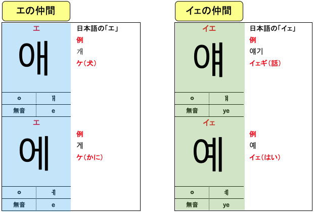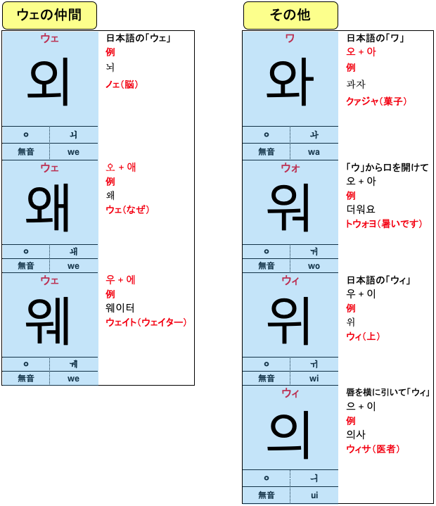 ハングルの合成母音(11字)について