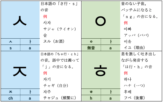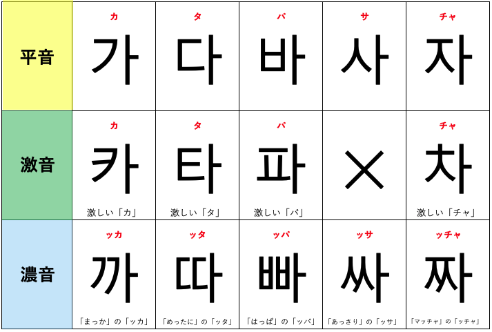 ハングルの激音(4字)、濃音(5字)について