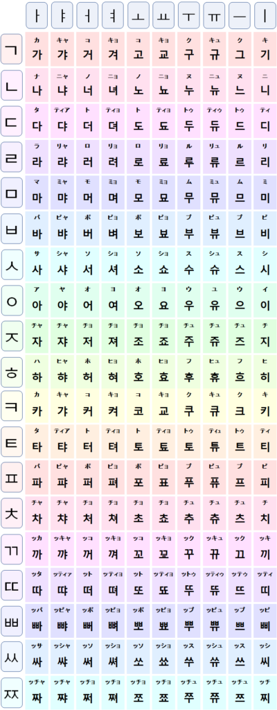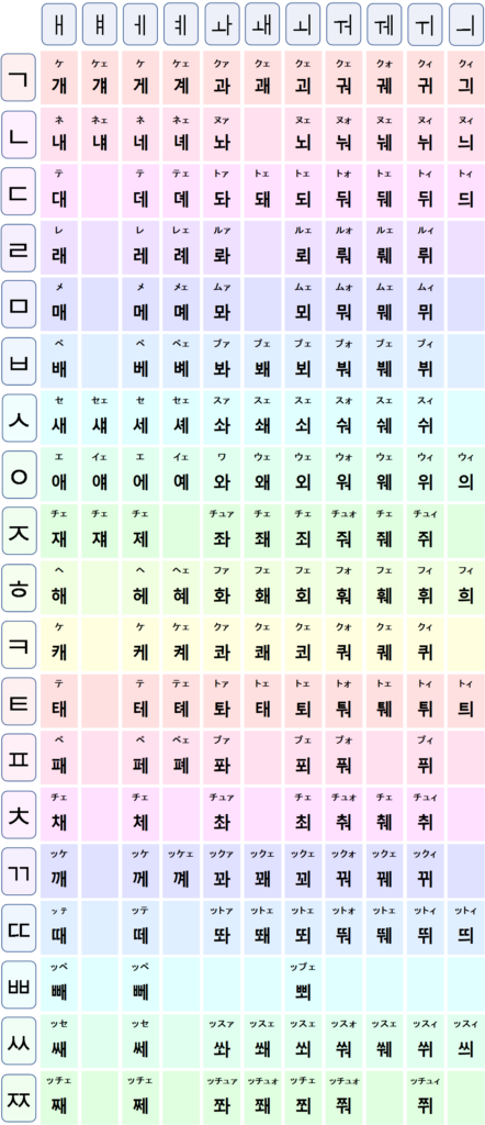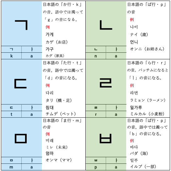 上が、韓国語の基礎(ハングル)です。