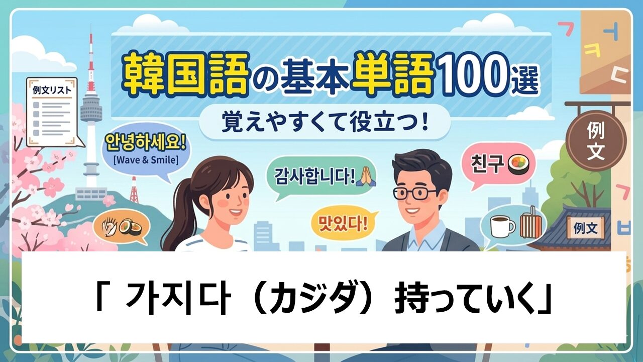 今回は、日常会話で本当によく出てくる 「가지다(カジダ)」 を、初心者の方でも安心して読めるように、ゆっくり・丁寧に解説していきます。
