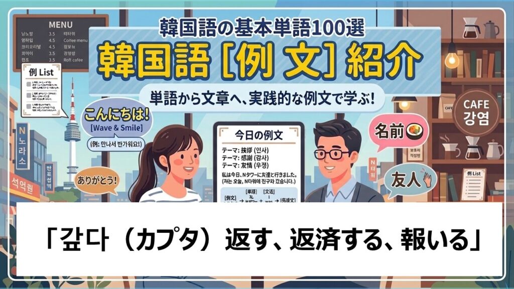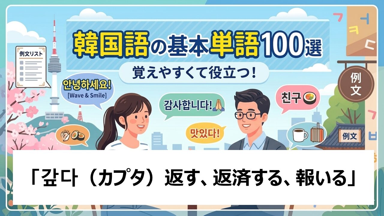 今回はそんな中でも、気持ちと責任がこもる「返す」を表す「갚다(カプタ)」を、ゆっくり・丁寧に見ていきましょう。