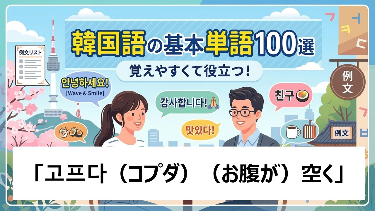 韓国語の「고프다(コプダ)お腹がすく)の意味と使い方は?【例文あり・TOPIK対策】音声付き
