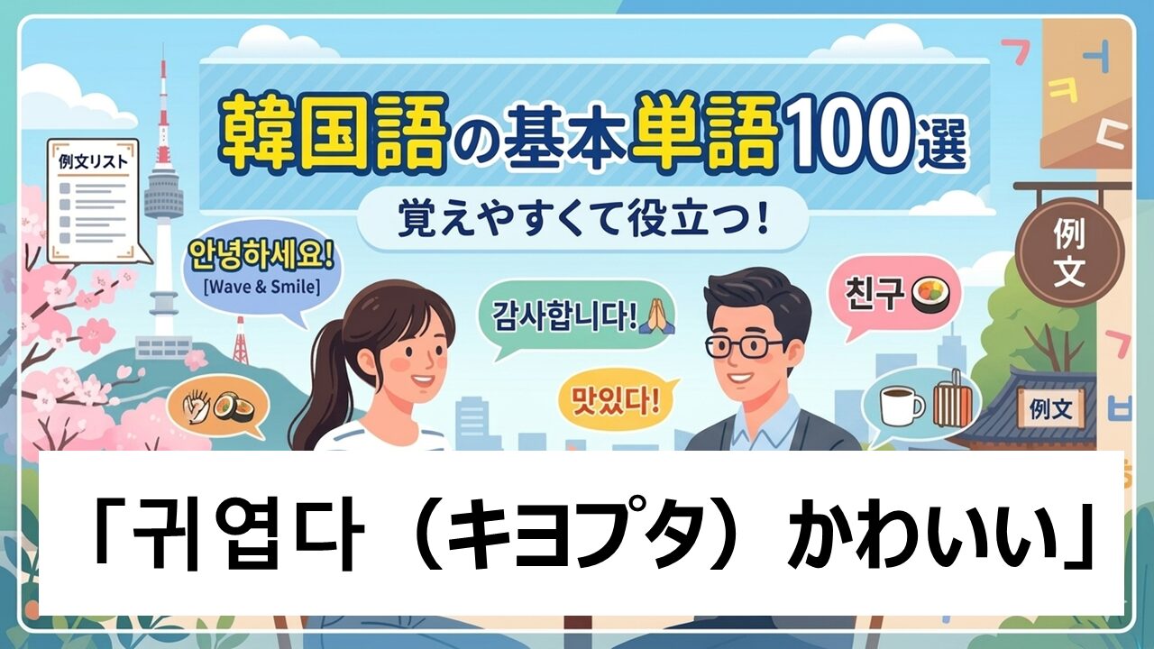 - 귀엽다(キヨプタ)かわいい は「愛らしい・思わずほほえむ可愛さ」を表す基本単語。